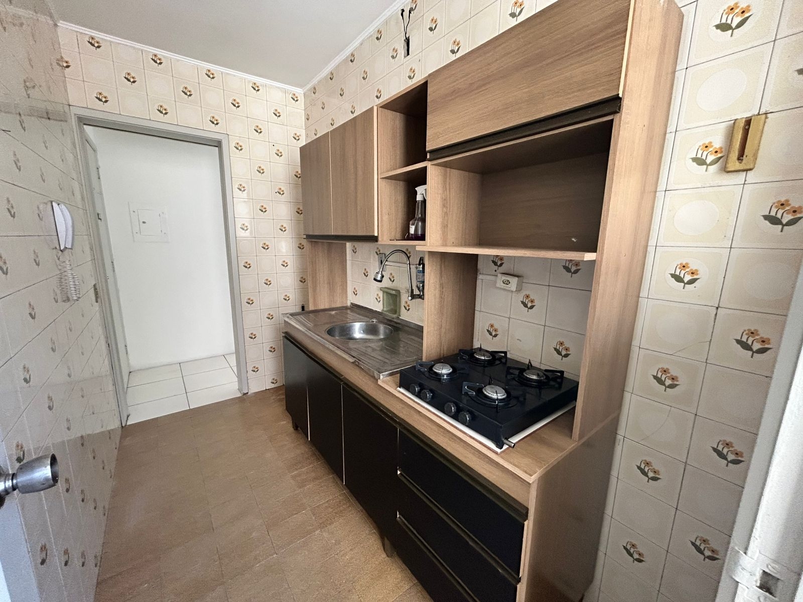 Apartamento com 01 dormitório, living para dois ambientes, cozinha, área de serviço e banheiro social.