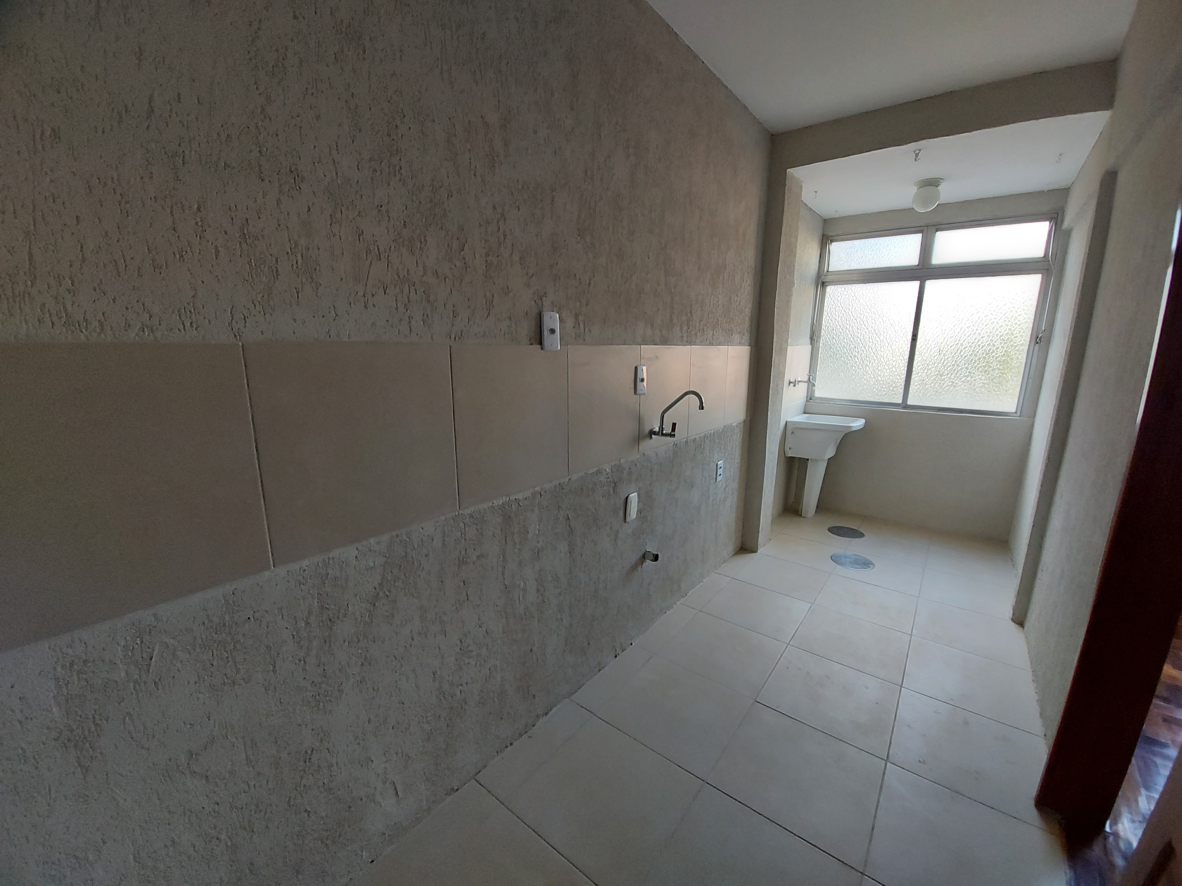 Apartamento com 02 dormitórios, Living, cozinha e área de serviço.