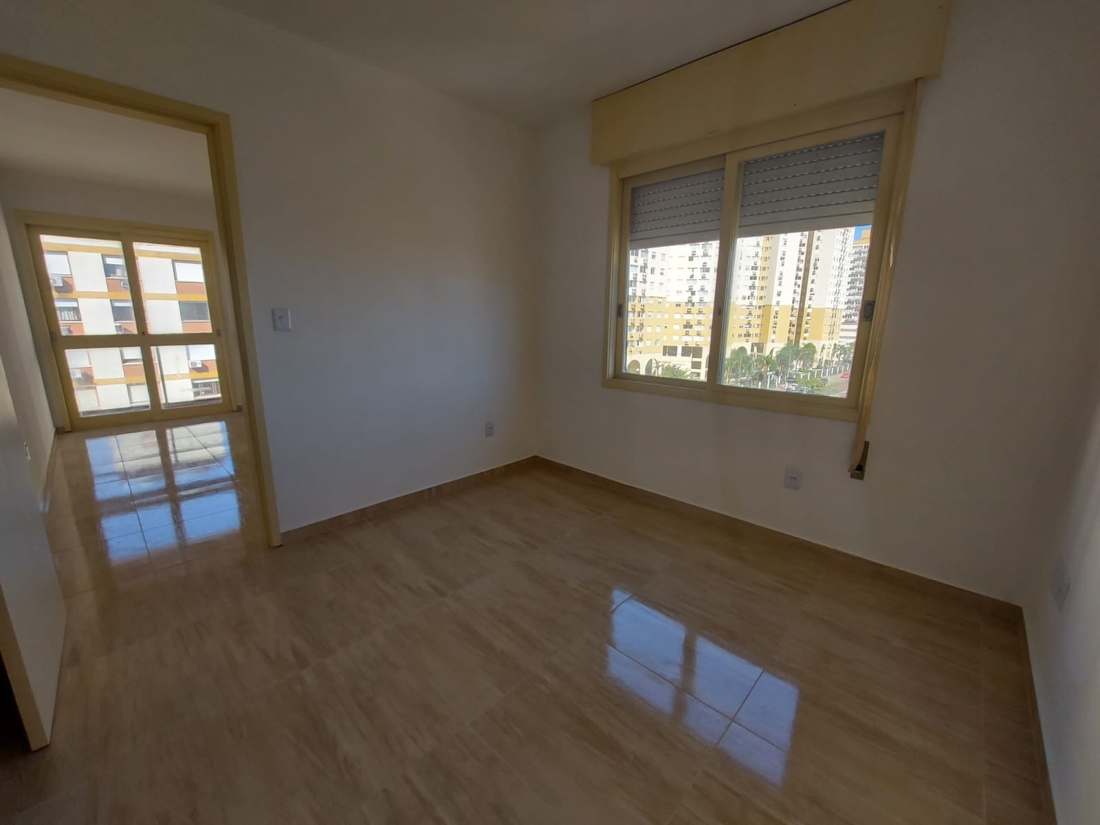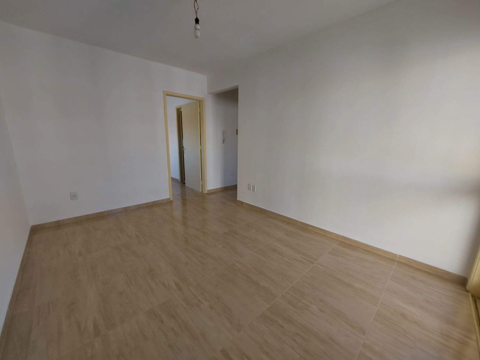 Apartamento 1 dormitório, living com sacada, cozinha conjugada com área de serviço, banheiro social.
